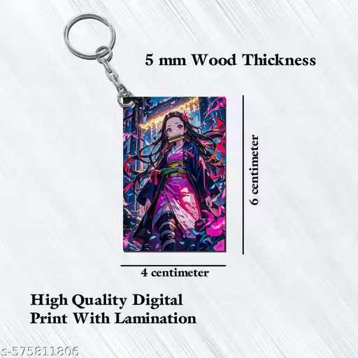 **Product Description : Demon Slayer HD Printed Wooden Keychain**